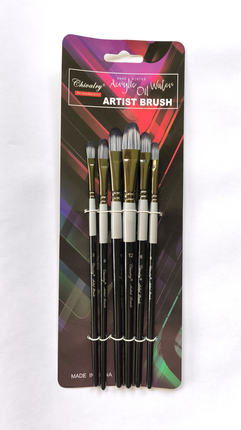 23573 LENGUA DE GATO BOMEIJIA BLISTER PINCEL X 6 UNID- MGO NEGRO C/PLATEADO